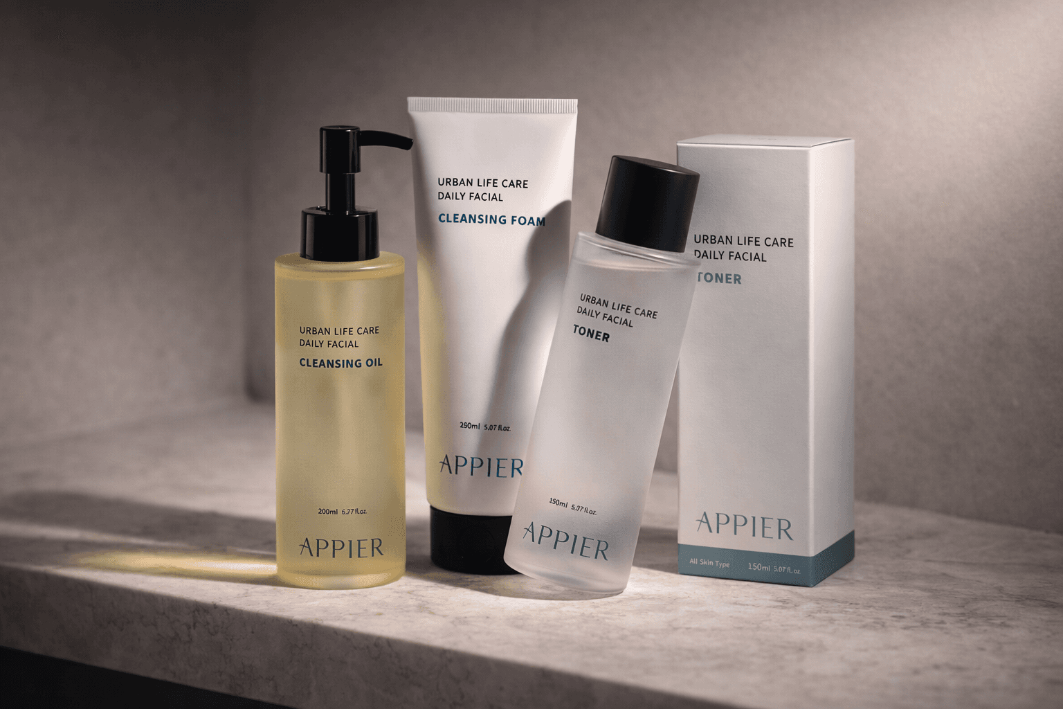 APPIER는 도시의 일상을 살아가는 현대인을 위한 Urban Life Care 스킨케어 브랜드입니다. 바쁜 일상과 지속적인 스트레스, 외부 유해 환경에 노출된 현대인의 피부는 더 이상 단순한 기능성으로 해결될 수 없는 상태에 놓여 있습니다. APPIER는 미백, 주름 개선, 자외선 차단과 같은 개별 기능에 집중하기보다, 도시 생활 전반에서 누적되는 다양한 자극으로부터 피부를 보호하고 균형을 회복시키는 생활 밀착형 케어를 제안합니다. 피부에 꼭 필요한 유효 성분을 명확한 기준으로 전달하며, 과도한 효능 주장보다는 피부가 본래의 컨디션을 유지할 수 있도록 돕는 데 집중합니다. 본 프로젝트는 APPIER의 핵심 개념인 Urban Life Care를 중심으로, 브랜드 아이덴티티와 패키징 시스템을 개발하는 데 목적을 두었습니다. 절제된 시각 언어와 균형 잡힌 구성, 그리고 일상 속에서 반복 사용되기 위한 기능적 구조를 통해, 도시 환경에서 신뢰할 수 있는 스킨케어 브랜드의 모습을 시각적으로 구현했습니다.